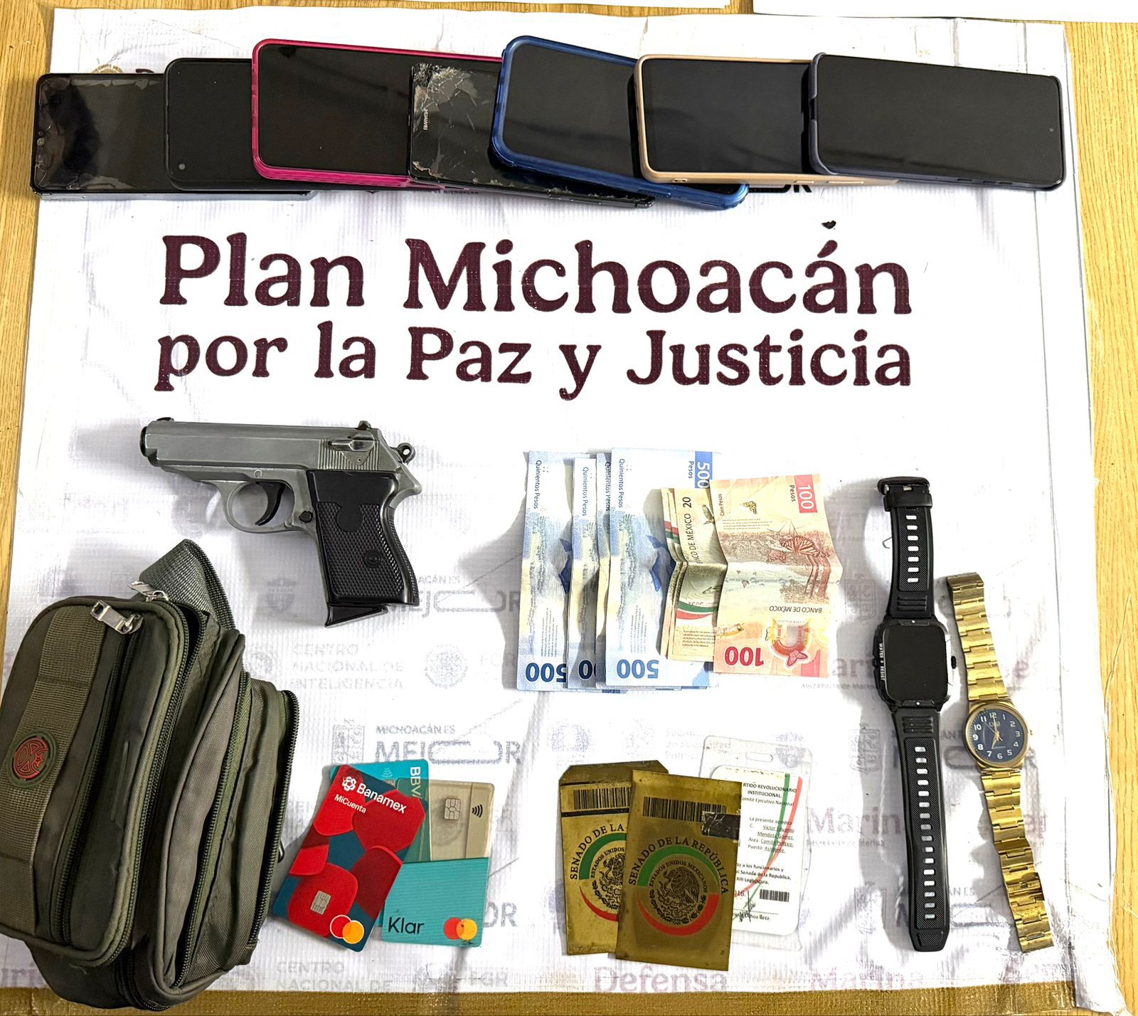 Por lo que metros adelante fueron asegurados y tras realizarles una revisión de rutina no les encontraron nada ilícito entre sus pertenencias, sin embargo en el vehículo había una mochila donde encontraron una replica de una pistola de juguete, identificaciones del Senado de la República y la cantidad de 3 mil 160 pesos en efectivo.