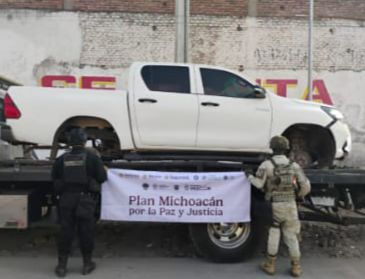 El primer aseguramiento fue de dos camionetas, tipo Pick-up, de color blanco, ambas de la marca Toyota, las cuales presentaban marcas de desvalijamiento y perforaciones de proyectiles de arma de fuego y con reporte de robo vigente.