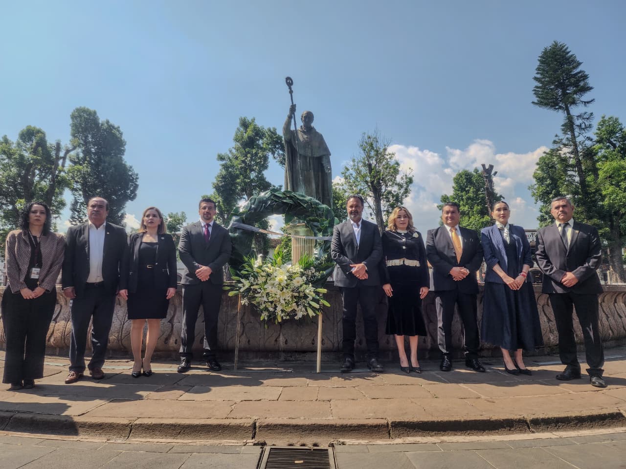 Pátzcuaro, Mich.- En el marco del 461 aniversario luctuoso de Vasco de Quiroga, quien fue nombrado primer Obispo de Michoacán, éste sábado 14 de marzo en la plaza que lleva su nombre en Pátzcuaro, autoridades estatales, municipales y educativas, recordaron "el legado de Don Vasco de Quiroga sigue presente en las tradiciones, la cultura y la forma de vida de las comunidades purépechas, siendo un referente histórico de justicia social, solidaridad y trabajo colectivo".