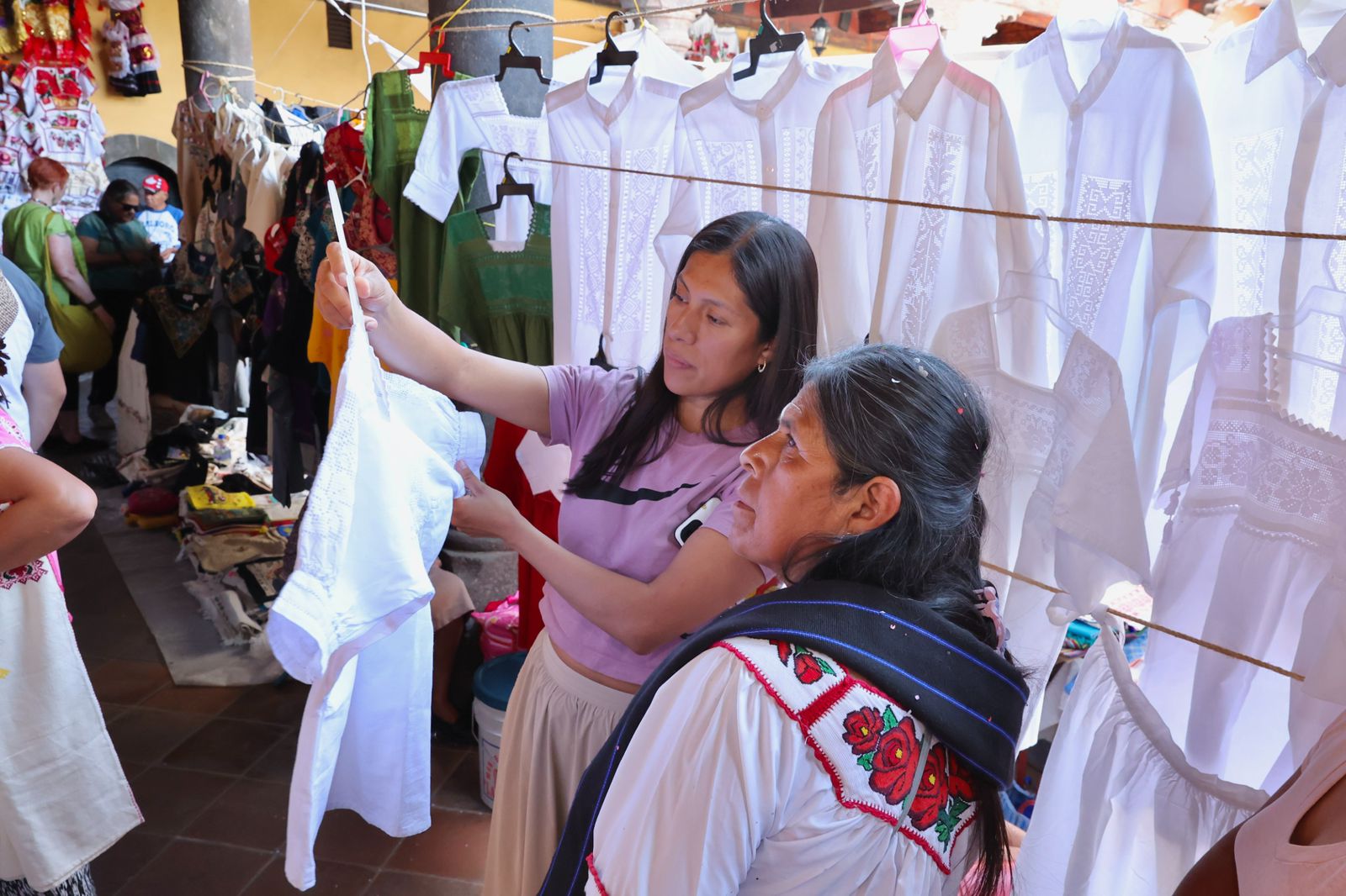 Asimismo, podrán llevar a sus hogares rebozos de algodón y plumas, guanengos bordados y deshilados, figuras y vajillas de barro, figuras de vidrio soplado, máscaras, muebles de madera y fibra vegetal, diversos productos de cobre, piñas de barro, artículos de laca perfilada, guitarras, sombreros, entre otros artículos.