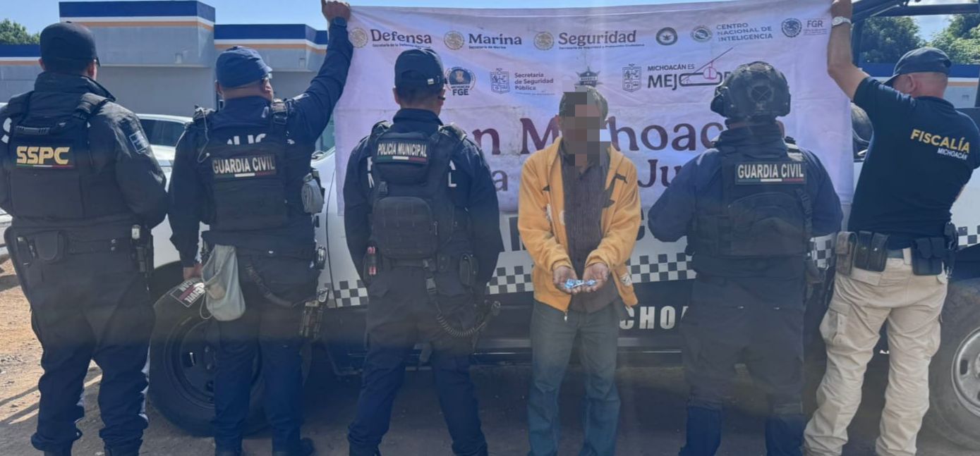Primeramente en la calle Emilio Carranza, en el Centro, en la ciudad de Uruapan, fue detenido Francisco Javier R. C., de 24 años de edad, vecino de la comunidad indígena de Capacuaro, en este municipio, cuando manejaba un automóvil, de la marca Nissan, tipo Sentra, modelo 2015, de color azul, con placas PFJ-027-L, el cual cuenta con reporte de robo vigente.