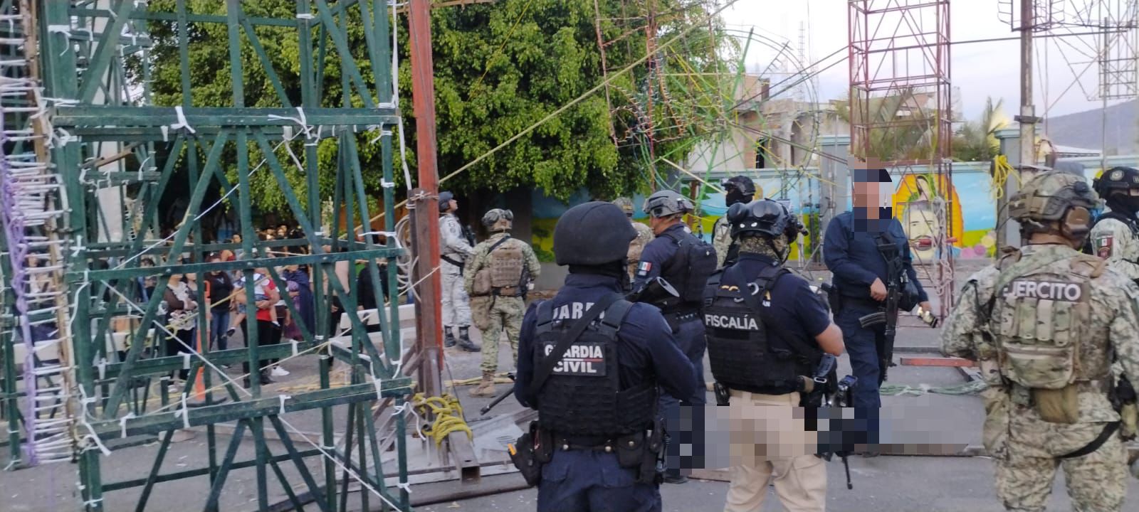 Se informó que los oficiales de la Guardia Civil, Guardia Nacional, SEDENA y de la Fiscalía General del Estado, arribaron hasta la plaza principal de la referida localidad, donde se celebraba la fiesta patronal.