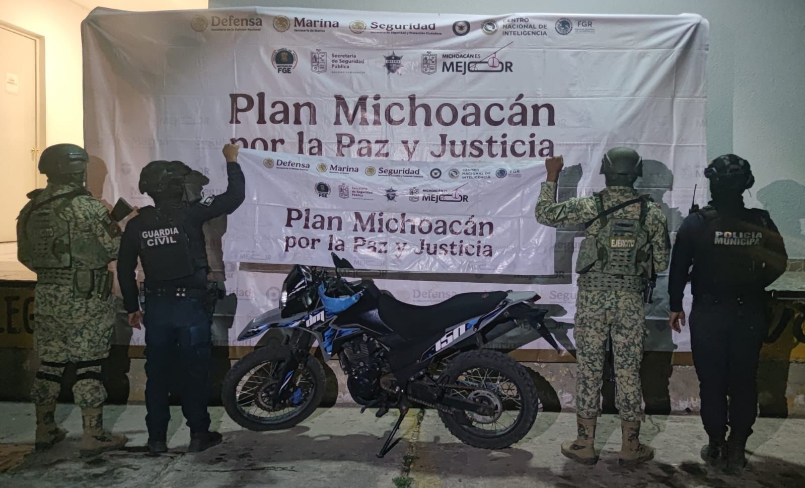Sobre su detención se informó que los oficiales realizaban un recorrido sobre la carretera que va a Aguililla, a la altura de la desviación a la localidad de El Recreo, le marcaron el alto dos personas que viajaban en una motocicleta, marca Italika, de color negro y azul para realizarles una revisión de rutina.