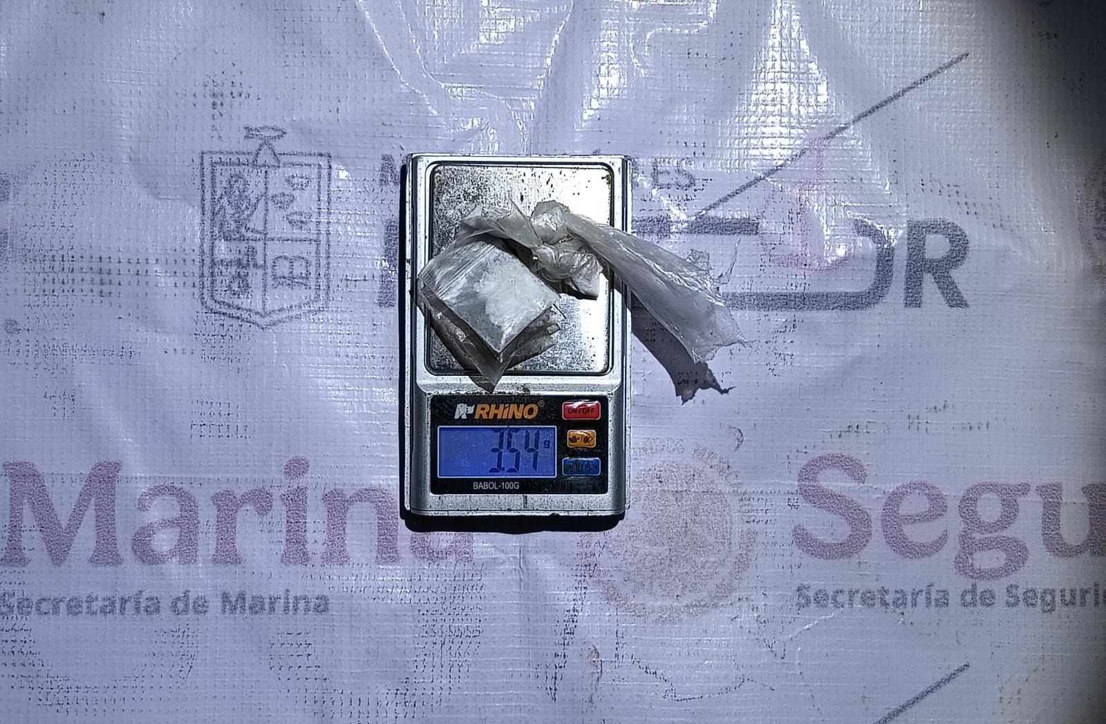 Los oficiales encontraron entre sus pertenencias cinco envoltorios de plástico transparente con una sustancia granulada con las características de la referida droga, la cual tenía un peso de 3.53 gramos.