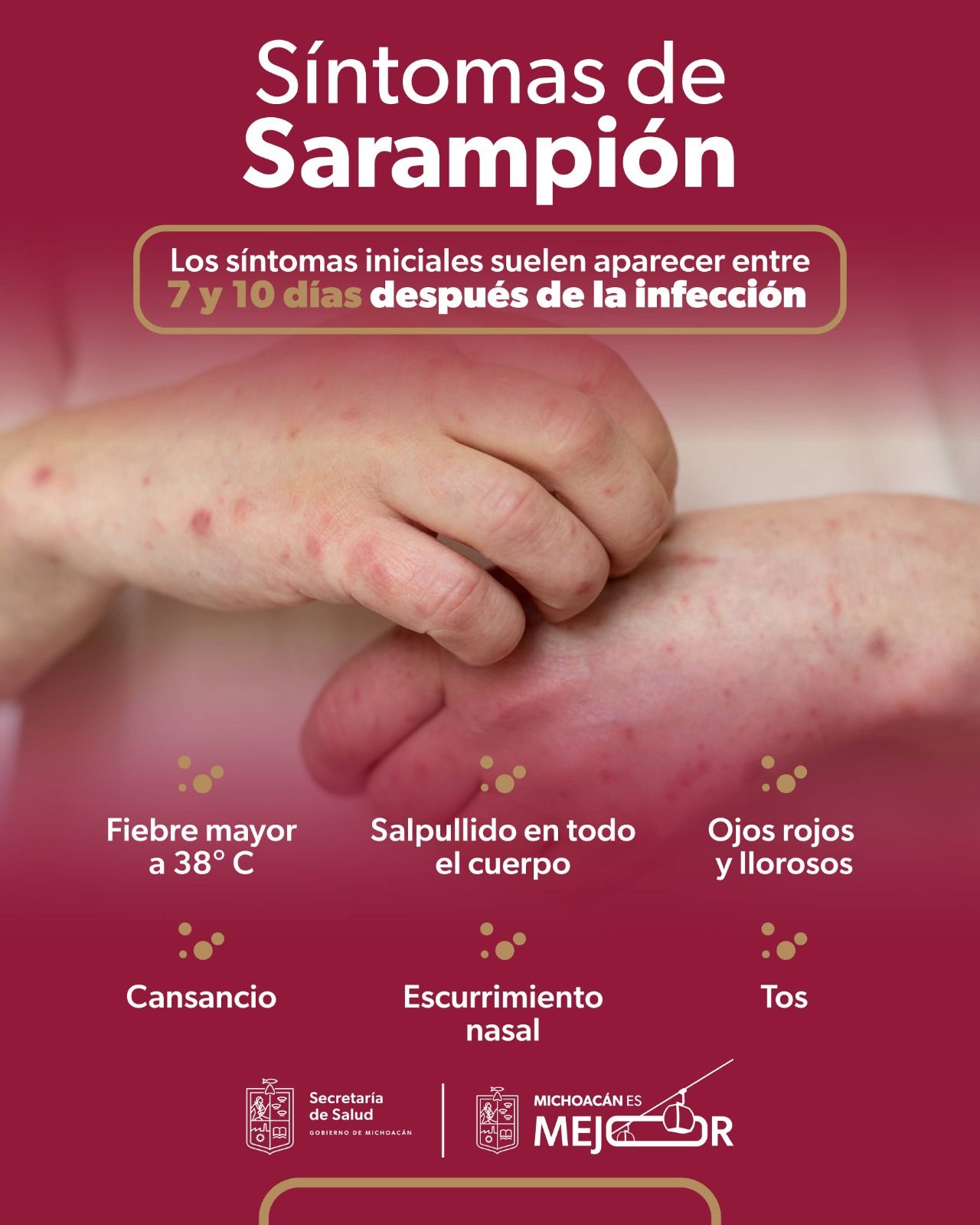 Morelia, Michoacán, 18 de febrero de 2026.- Para fortalecer la vigilancia epidemiológica, la Secretaría de Salud de Michoacán (SSM) hace un llamado a la ciudadanía a identificar síntomas de sarampión de manera temprana y acudir de inmediato a su unidad de salud más cercana ante cualquier sospecha.