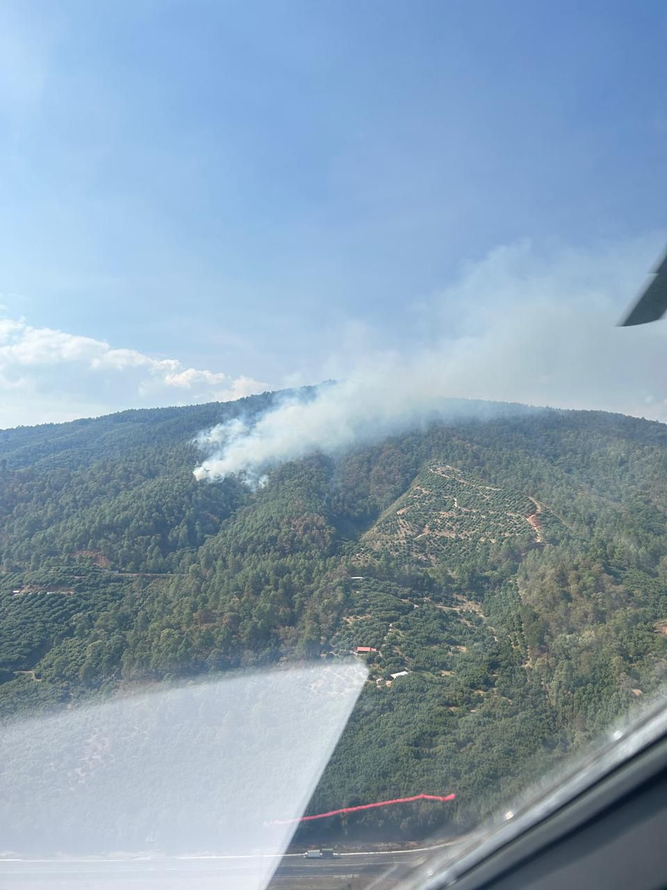 Salvador Escalante, Mich.- Se atendió el incendio forestal registrado en la localidad de Jujucato, en el municipio de Salvador Escalante, mediante el despliegue de apoyo aéreo con un helicóptero equipado con helibalde, perteneciente a la Secretaría de Seguridad Pública.