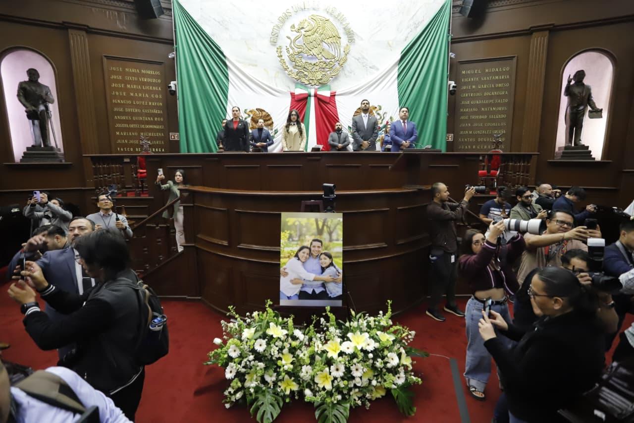 Morelia, Mich.- Previo al inicio de la sesión programada para este miércoles, diputadas y diputados integrantes de la 76 Legislatura, rindieron homenaje póstumo y guardaron un minuto de silencio por el sensible fallecimiento de Víctor Manuel Mujica Vega y Anayeli Hernández León, intérpretes de Lengua de Señas Mexicana y compañeros trabajadores de este Poder Legislativo, así como de su hija Megan Mujica Hernandez.