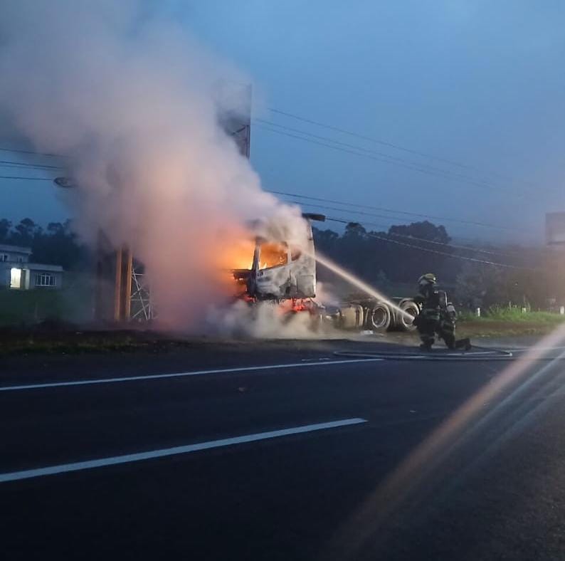 Se informó que se trató de un camión en color blanco, del cual se desconocen, marca, tipo, línea o serie, debido a que las llamas lo alcanzaron a consumir, sin embargo, se pudo conocer que pertenece a la empresa Sotavento.