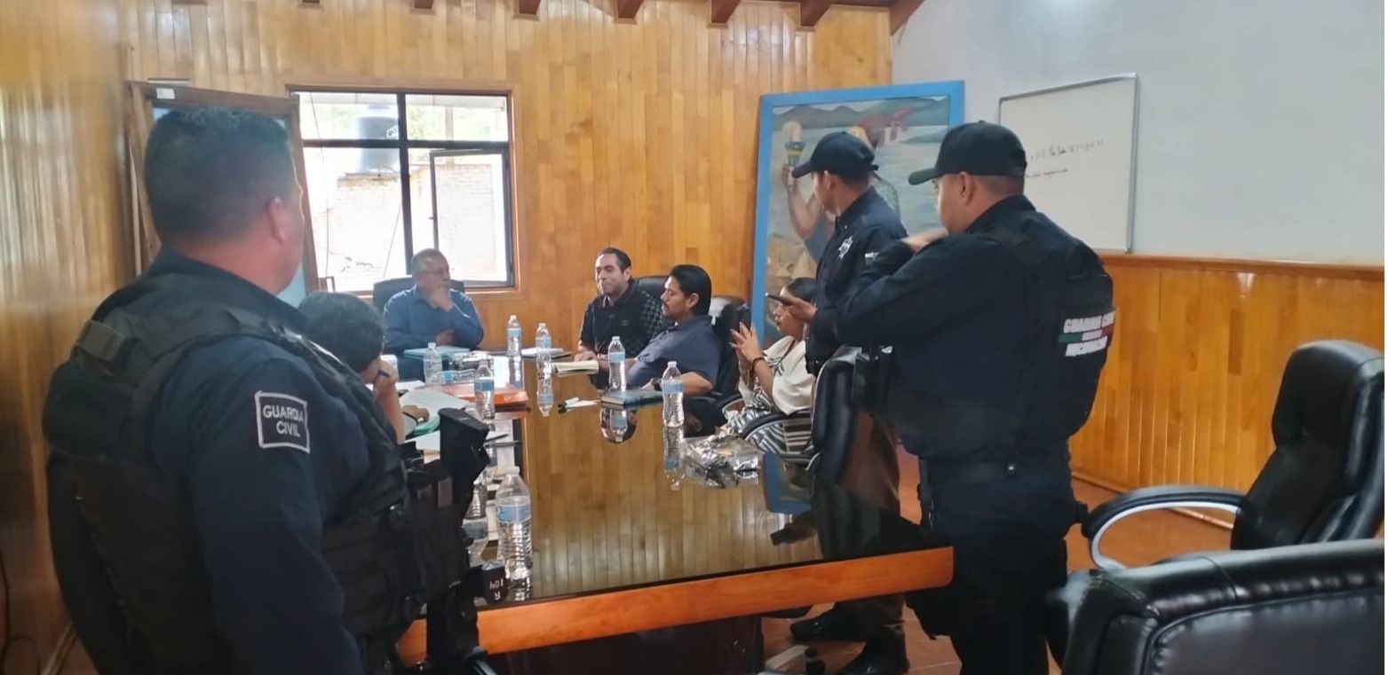 Tzintzuntzan, Mich.- Con la finalidad de salvaguardar la seguridad en las celebraciones que se avecinan en el municipio de Tzintzuntzan, se realizó una reunión entre elementos de la Guardia Civil e integrantes de cabildo que encabeza patricio García Alva.