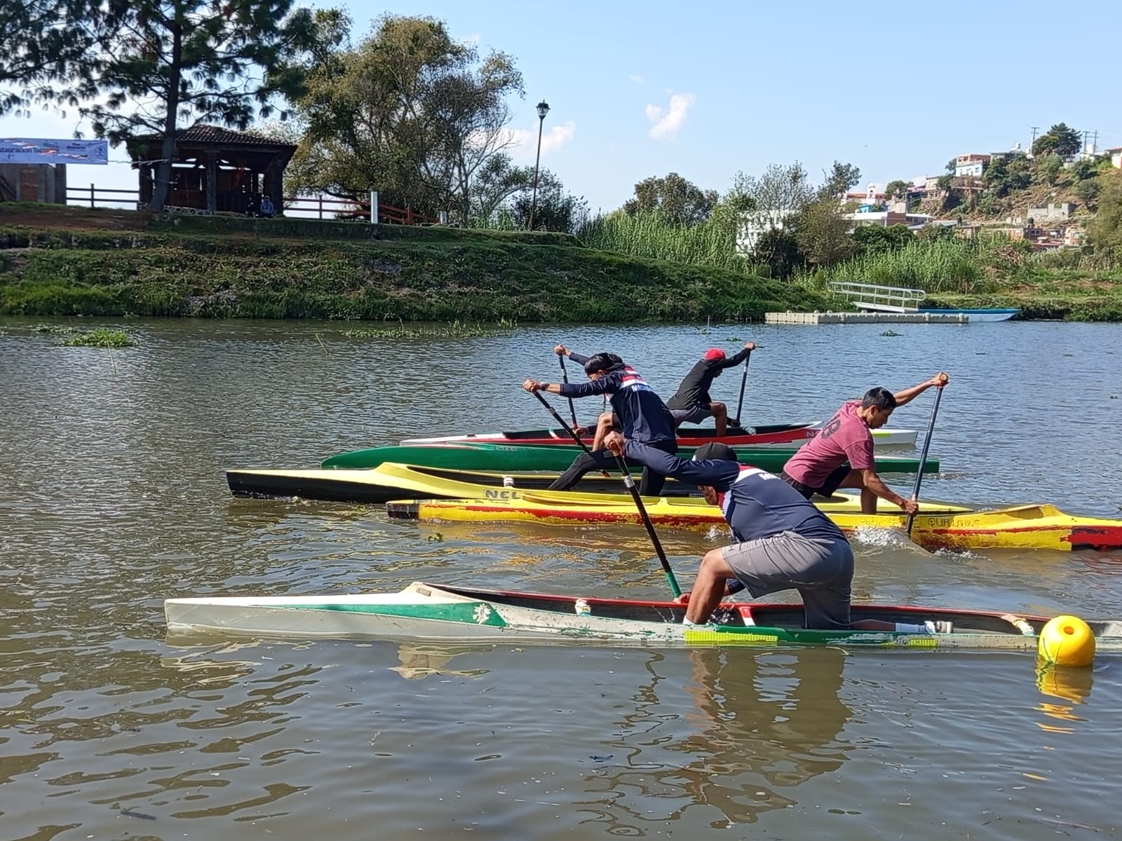 Se contó con la presencia de atletas de Xochimilco de la Ciudad de México, así como de la Escuela de Canotaje de la Isla de Uranden, en la regata, "Sembrando Vida por la Restauración de la Zona lacustre".